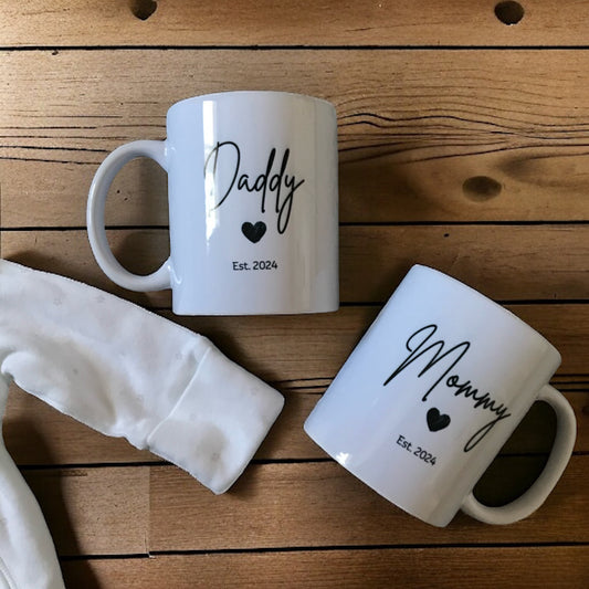 Welcome to parenthood: Discover our Mommy and Daddy 11oz Mug set. Drinkware Coffee Ceramic Drink Reusable Reuse Washable