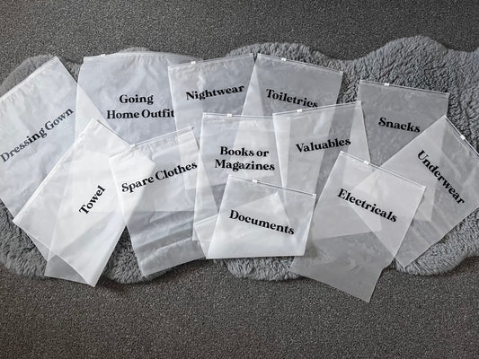 Short-Stay Hospital Bag Organizers with 9 labeled organizers and 1 spare - 24x35cm