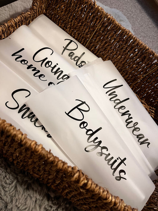 Baby Hospital Organiser Bag Vinyl Labels Decal Stickers | Baby Essentials | Baby Shower Gift | Mum to Be | Labor & Delivery Bag Labels